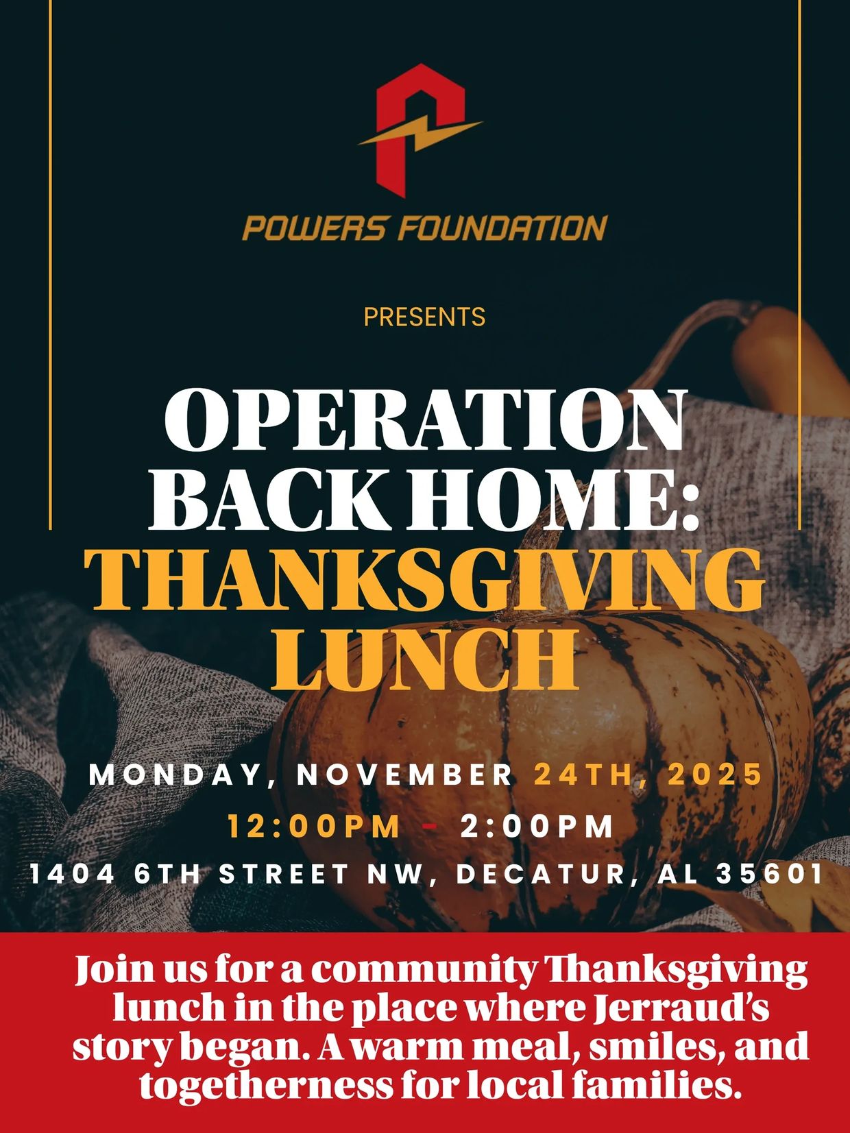 Operation Back Home: Thanks Giving Lunch Monday November 24th @ 12pm